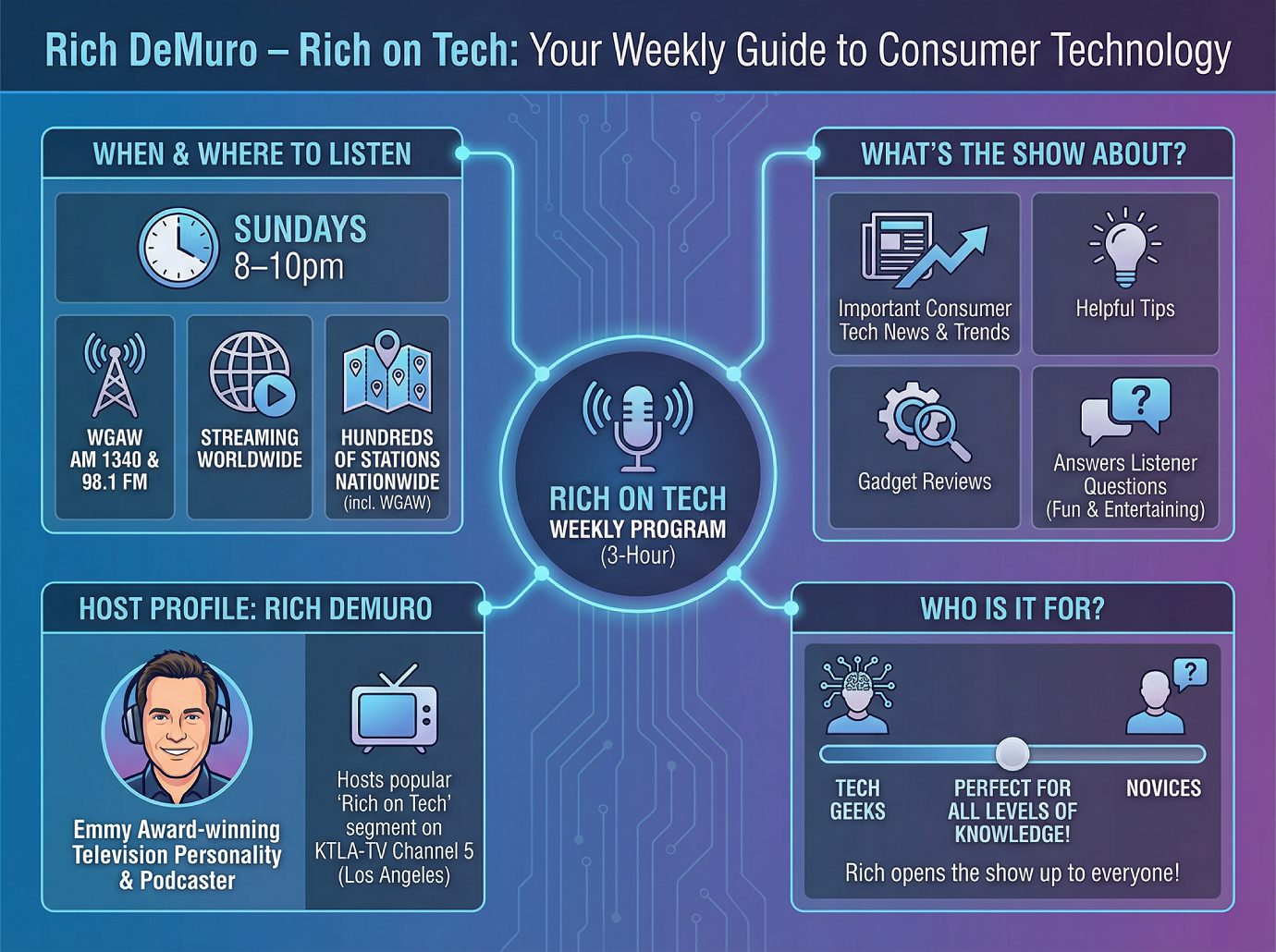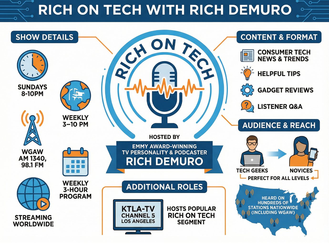 Rich on Tech can be heard on hundreds of stations nationwide including the renowned WGAW.